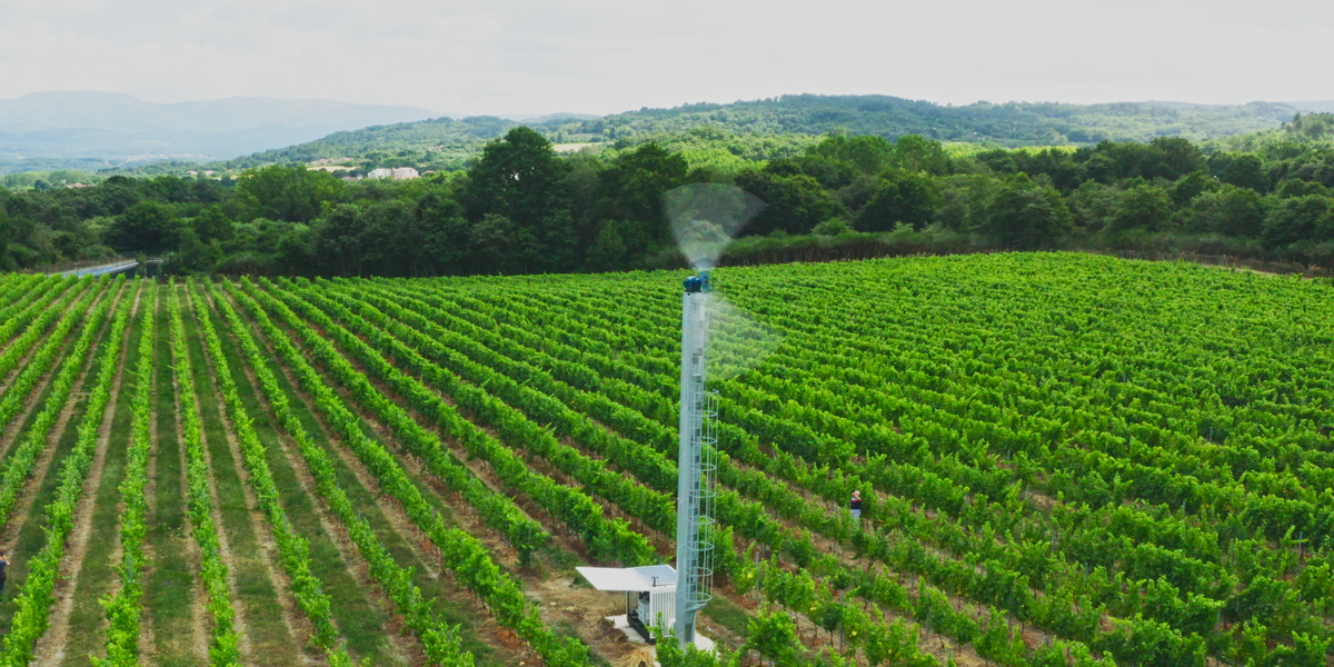 Zaštita useva od mraza do -6°C, idealna za voćnjake, vinograde i druge useve (pokriva površinu do 7,2 ha po tornju)